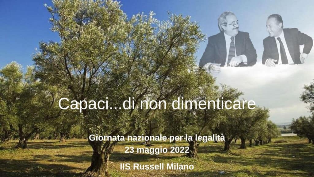 Si comunica che giorno 23 maggio 2022, alle ore 13:00, durante la sesta ora, in occasione della Giornata Nazionale della Legalità, verrà trapiantato nel giardino della scuola un albero in memoria delle vittime di mafia. Si invitano tutti i docenti e le rispettive classi a partecipare attivamente all’iniziativa della scuola e si consiglia di segnalare sul registro elettronico la sesta ora come educazione alla cittadinanza.