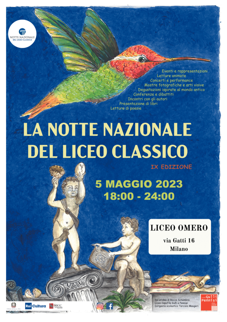 Si comunica che, nell’ambito delle iniziative promosse dal Ministero dell’Istruzione e del Merito, venerdì 5 maggio 2023, dalle ore 18:00 alle ore 24:00, in contemporanea con oltre 300 Licei Classici di tutto il territorio nazionale, si terrà la IX edizione della Notte Nazionale del Liceo Classico. Comunicato ufficiale