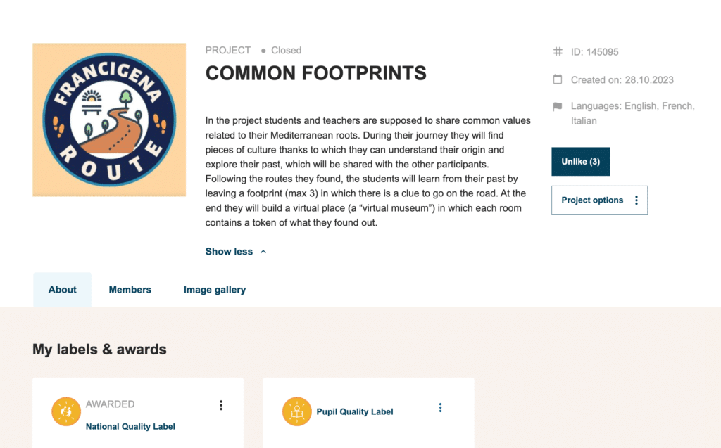 La classe 2B 2023/24 ha ottenuto un National Quality Label per il progetto online “Common footprints” con alcune scuole europee (Malta, Francia, Brescia) sulla via Francigena.